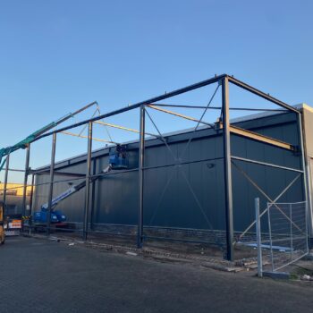 Zoals gezegd is Stedon ook op eigen locatie druk bezig met een mooi project. Begin 2022 zijn wij van start gegaan met het uitbreiden van onze productiehal op de hoofdlocatie in Leeuwarden.