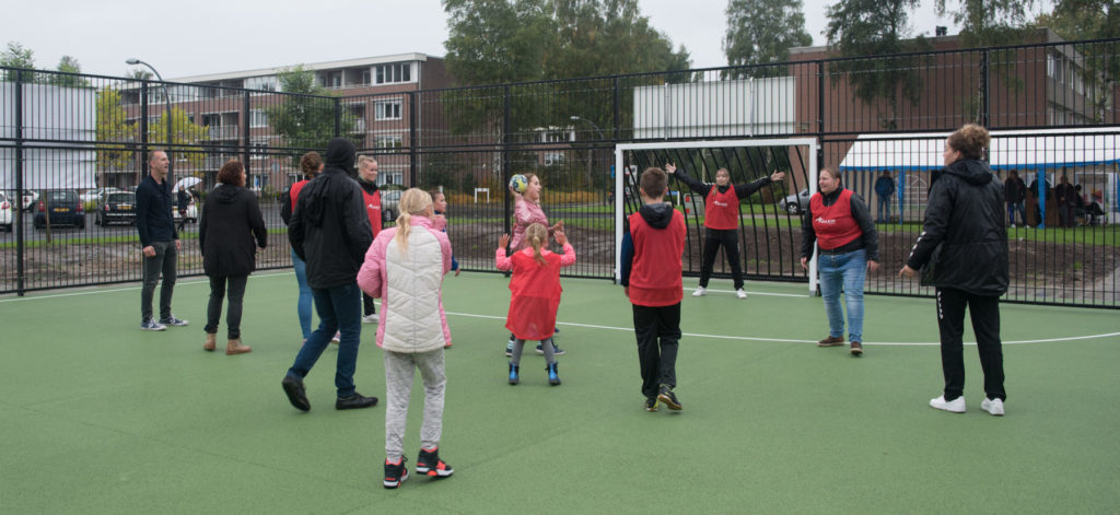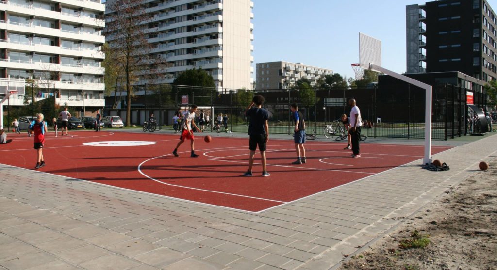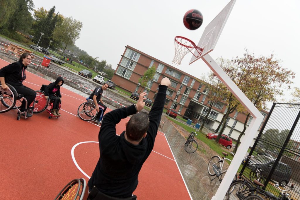 Het sportplein is voor jong tot oud maar ook zeker voor mensen met een beperking. Het basketbalveld is bijvoorbeeld voorzien met belijning die voldoet aan de wedstrijdeisen voor rolstoelbasketbal. Een balletje schoppen in de sportkooi of een dunk maken op het basketbalveld; het plein zal de wijk verbinden doordat wijkbewoners elkaar ontmoeten en samen gaan bewegen.