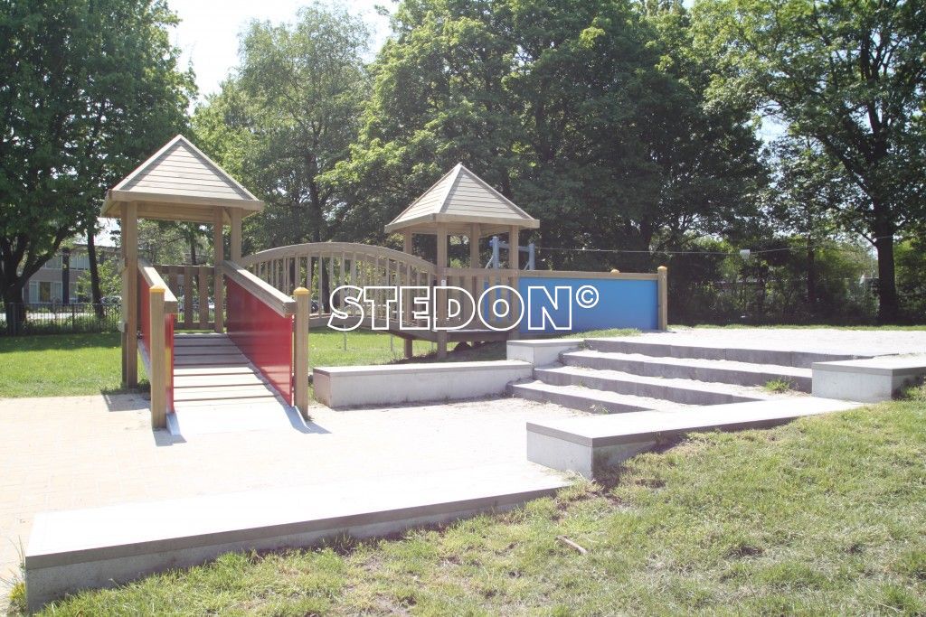 Voor gemeente Leeuwarden heeft Stedon op de Van Loonstraat een speeltuin ingericht met diverse uitdagende speeltoestellen.