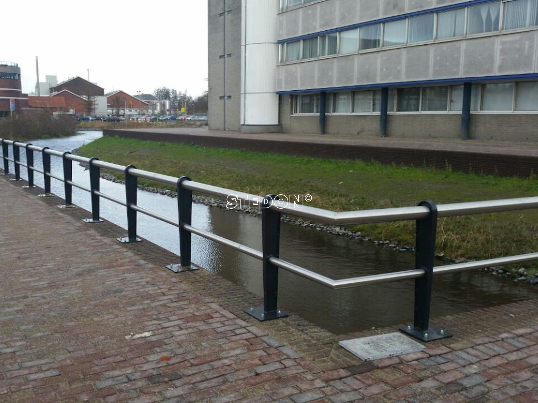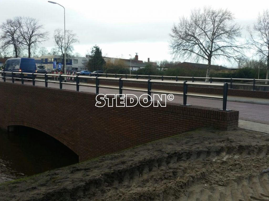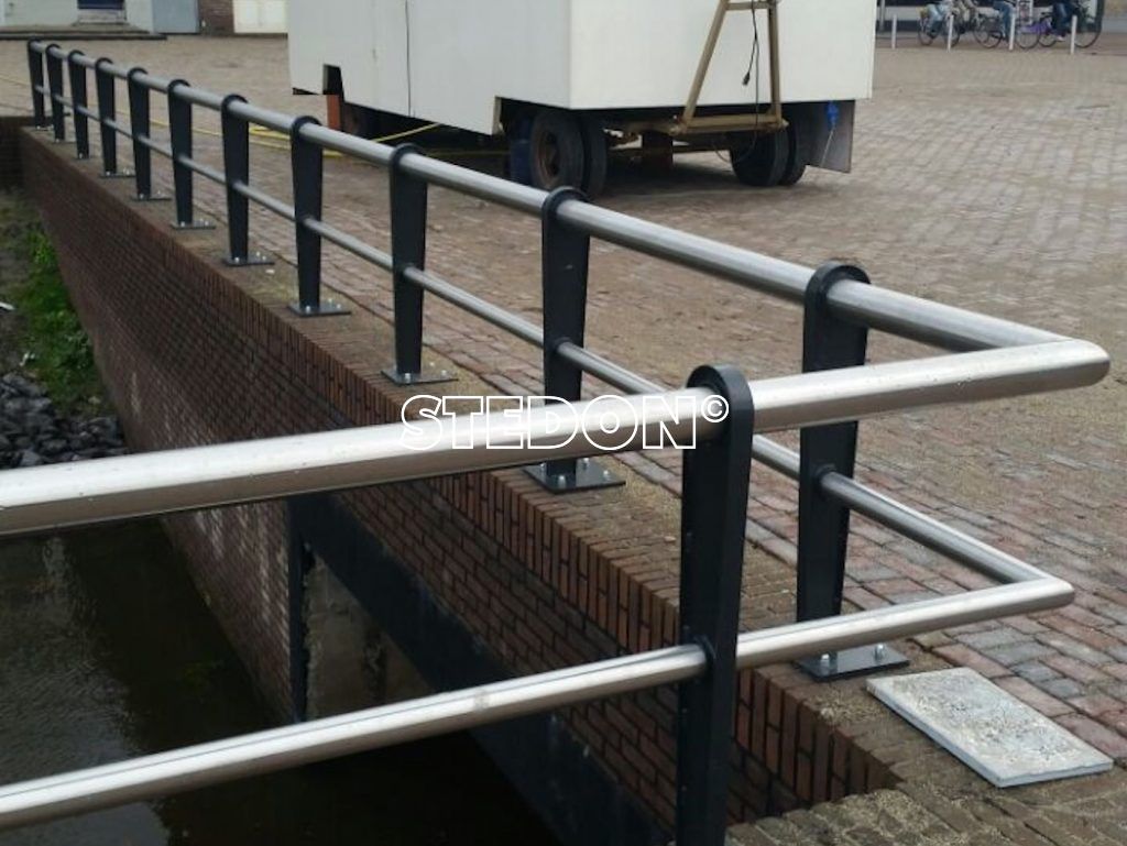 Voor 2 locaties in Roosendaal een kadeleuning geleverd en gemonteerd. De liggers zijn RVS en de staanders van verzinkt en gepoedercoat staal