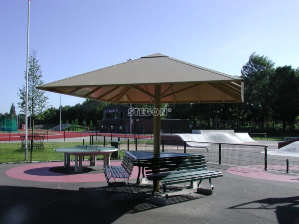 Ontmoetingsplek, ontmoetingsplekken, jongen ontmoetingspek, hangplek, picknickset, picknickplaats, overkapping openbare ruimte,