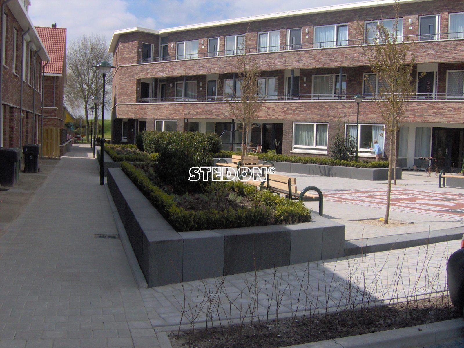 Hiernaast ziet u een voorbeeld van een binnenplaats die is samengesteld uit verschillende betonnen elementen. Doordat je gebruik maakt van verschillende elementen is er voor elke binnenplaats, groot of klein, de mogelijkheid om een binnentuin te realiseren. De tuin kun je verder aankleden met banken en afvalbakken, om er voor te zorgen dat de omgeving schoon blijft. Elke omgeving beschikt over zijn eigen kwaliteiten, waardoor je een op maat gemaakte, unieke tuin kunt creëren.