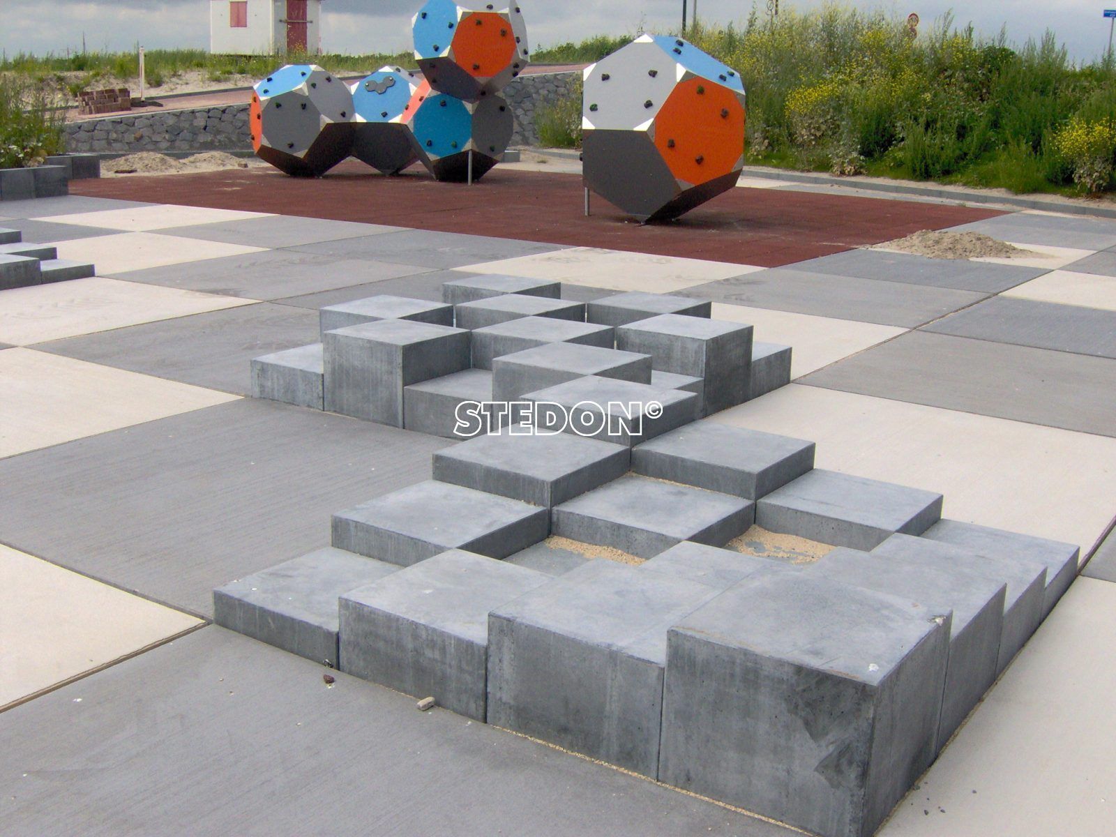 Met vormen kun je veel varieren. Door van één vorm, bijvoorbeeld een kubus, allemaal verschillende maten en hoogtes te combineren creëer je een speels doch rustig geheel. Het geeft een extra uitstraling aan een plein of zorgt voor een indrukwekkende entree bij kantoorgebouwen e.d.
