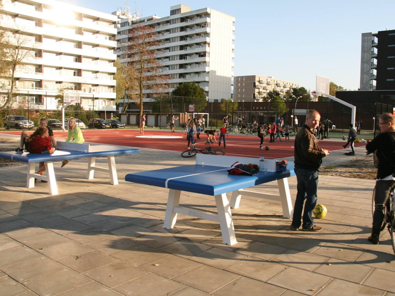 • Neemt weinig ruimte in op een schoolplein, wijk of sportplein