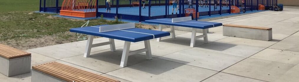 Advies: een ruimte van 14 x 7 m om de tafeltennistafel vrijhouden (bestraten)