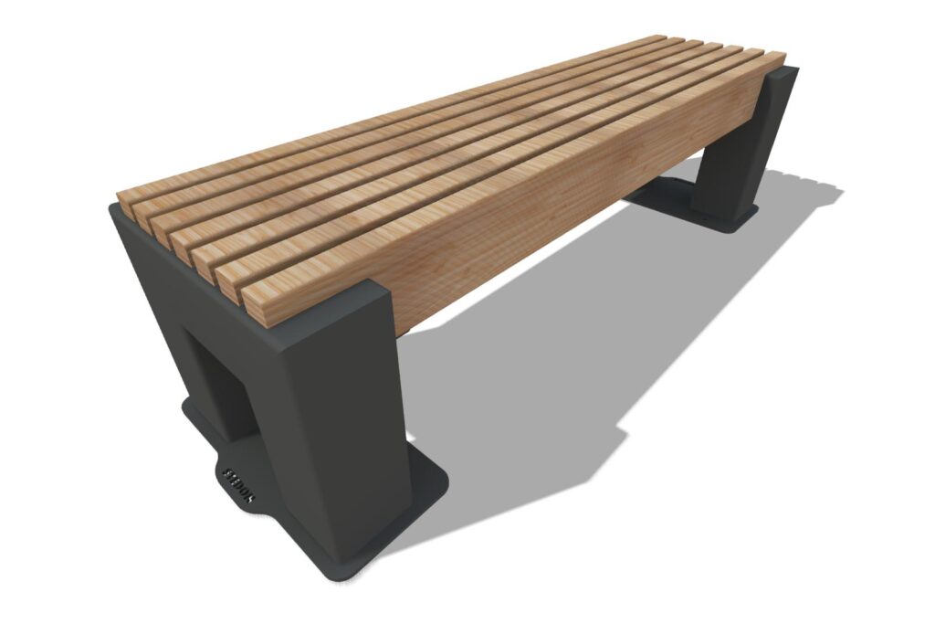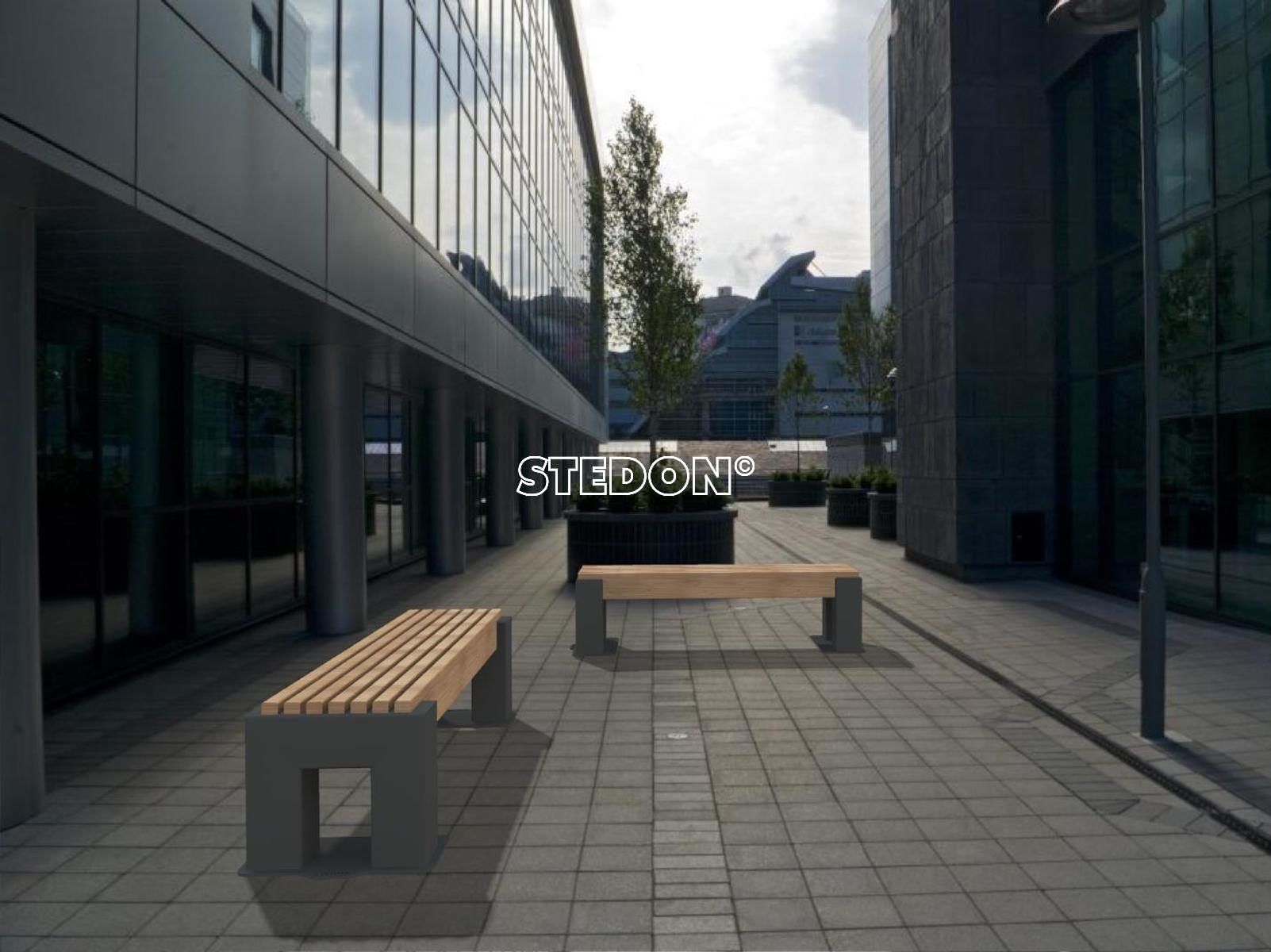 De Parkbank Linear SH van Stedon is een minimalistische, maar uitgesproken zitoplossing. Het ontwerp zonder rugleuning straalt eenvoud en kracht uit en is daarmee bijzonder geschikt voor moderne stedelijke omgevingen. Deze bank combineert robuuste metalen poten met brede houten planken, wat zorgt voor een krachtige en evenwichtige uitstraling. Desgewenst kunnen de poten in elke kleur worden uitgevoerd.