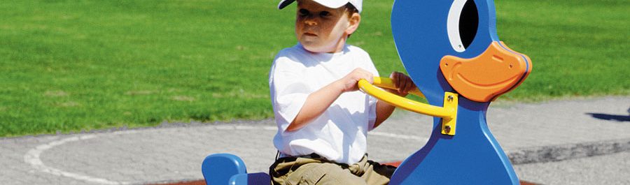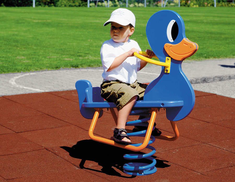 • Veertoestel Eend van blauw polyethyleen, gelakt met spiraalveer, inclusief thermisch verzinkte basisframes voor een minimale inbouwdiepte van 50 cm.