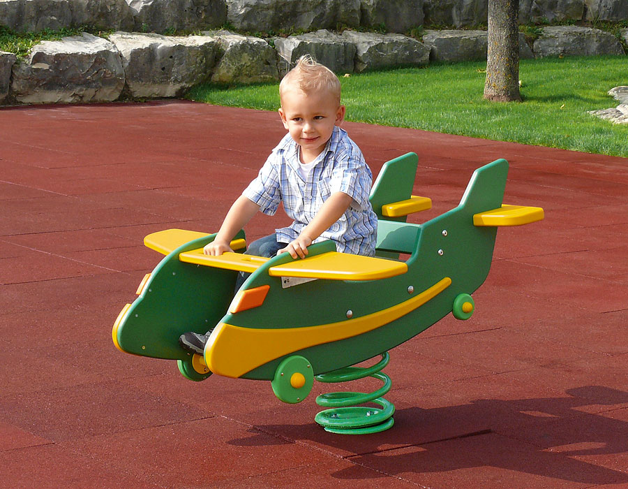 • Veertoestel Vliegtuig van polyethyleen, gelakt met spiraalveer, inclusief thermisch verzinkt basisframe voor een minimale inbouwdiepte van 50 cm.