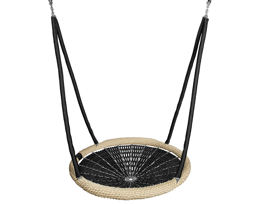 • E00337: Vogelnest Original Huck, diameter ø 125 cm, mat van kunststof schakels, beige touwring, met thermisch verzinkt kettingbeslag en zwarte beschermhoes.