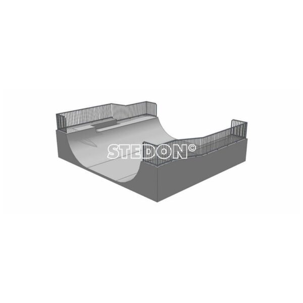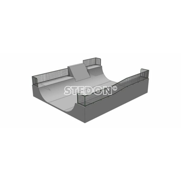 • Miniramp met extension, subbox en elevator: boven een bepaalde breedte is het nuttig om de standaard mini-ramp te voorzien van extra’s om meer variaties van tricks te kunnen maken. Dat is deze miniramp.