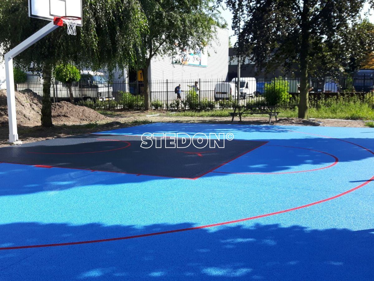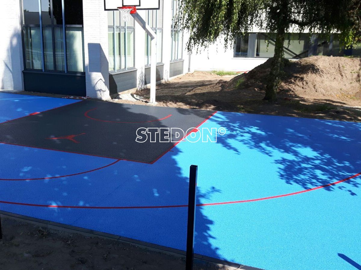 In Son heeft STEDON een half basketbalveld met drainbeton sportvloer geleverd en geplaats. De drainbeton vloer is met basketbal belijning en een afbeelding van de basketballer van Michael Jordan. De kleurcombinatie van deze vloer zorgt voor een echte eyecatcher.